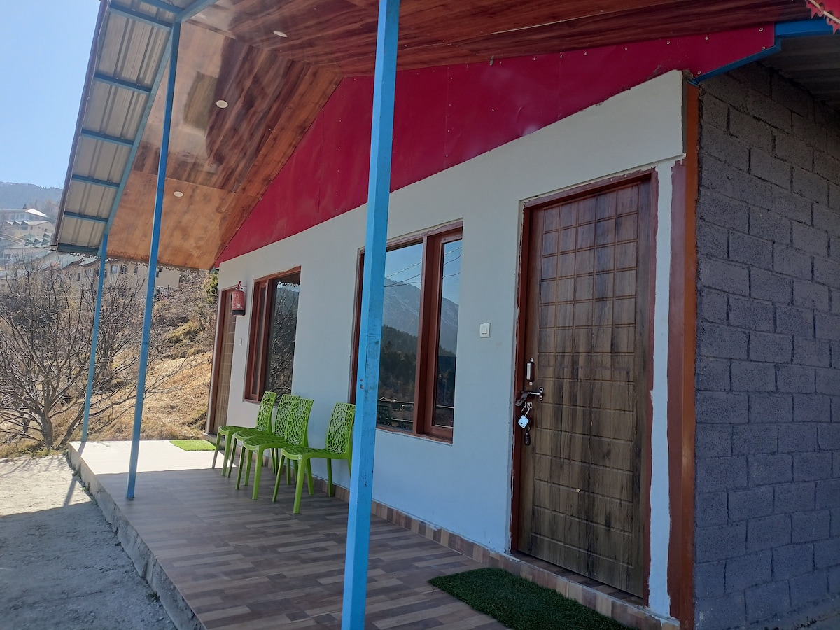 Diese Privatunterkunft befindet sich im Merag Valley-Village, einem malerischen und ruhigen Anwesen, umgeben von üppigen Kiefern- und Apfelbäumen, nur 5 km, 15 Autominuten von Joshimath an der Malari-Tapovan Road entfernt und bietet atemberaubende und weitläufige Ausblicke auf die Himalaya-Kette. Entdecke die perfekte Mischung aus Komfort und Natur in unserer Unterkunft - deinen ruhigen Rückzugsort und das Tor zu Abenteuern in den Bergen. Buche jetzt und entspanne dich in einer ruhigen Bergumgebung!