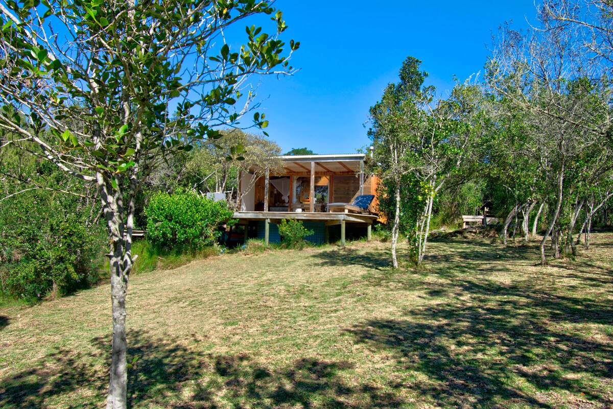 Dieser Rückzugsort an der Küste liegt eingebettet in die Klippen der Plettenberg Bay und bietet Paaren oder Alleinabenteurern, die eine Verbindung zur Natur suchen, einen ruhigen Zufluchtsort. Unsere gemütliche Wildside-Hütte ist durchdacht mit einer minimalistischen Ästhetik gestaltet. Unsere Unterkunft liegt in ruhiger Ackerlandschaft etwas außerhalb der Plettenberg Bay und verbindet ländliche Ruhe mit atemberaubendem Blick auf die Küste. Genieße sowohl den wilden Ozean, malerische Wanderwege als auch die Pracht dessen, was Plett zu bieten hat, alles in einem Umkreis von 10 km.