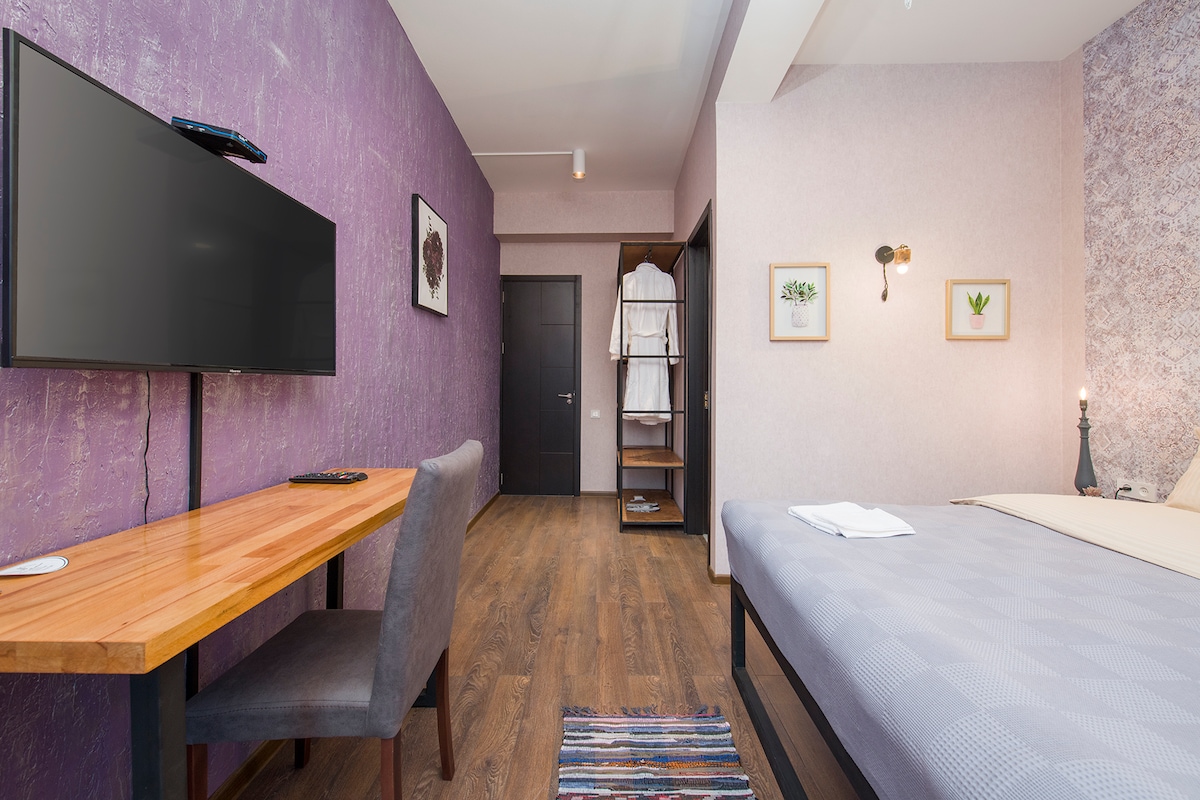 Modernes und gemütliches Schlafzimmer im Herzen von Tiflis. Voll möbliertes Schlafzimmer mit Badezimmer mit allen Einrichtungen, einschließlich Minikühlschrank und Wasserkocher. Die Bushaltestelle und alle Arten von Supermärkten und Apotheken sind 80 m (1 Min.) entfernt. Es befindet sich im Zentrum von Tiflis in der touristischsten Gegend, das Viertel ist sehr ruhig und freundlich. In der Nähe der Unterkunft kannst du den Rike Park, den Orbeliani-Platz, die Trockenbrücke, kulturhistorische Denkmäler, Bars und andere besuchen.