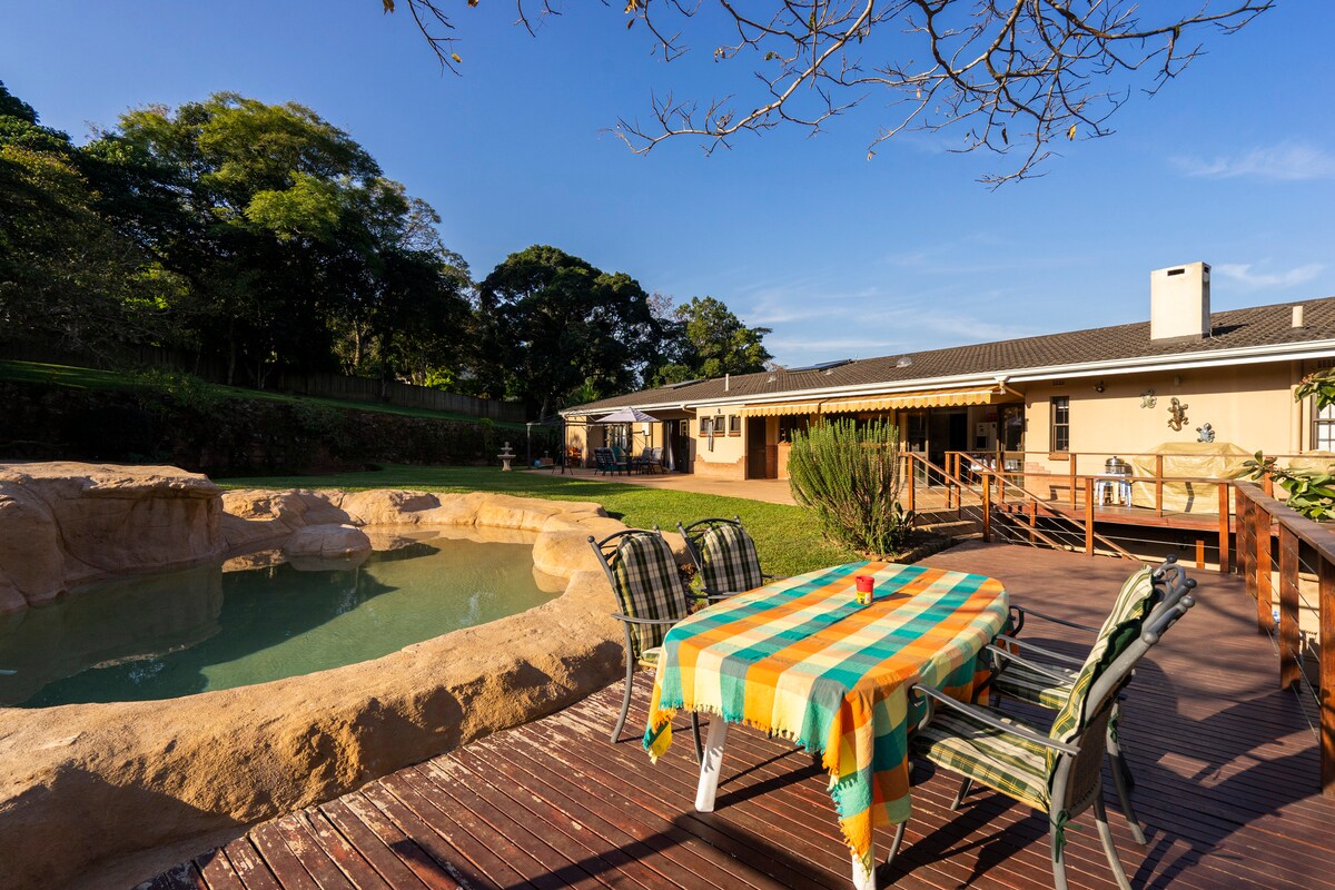 Im Herzen von Hillcrest, einem Hot-Spot für Gourmets und Kultur, bietet mein Ferienhaus einfachen Zugang zu Autobahnen, der Comrades Marathon Route, dem Kearsney College, dem Midlands Meander, mehreren Golfplätzen und Naturschutzgebieten, der Watercrest Mall und dem Hillcrest Private Hospital. 30 Fahrminuten von Durbans Stränden mit blauer Flagge und PMBs viktorianischem Charme entfernt.