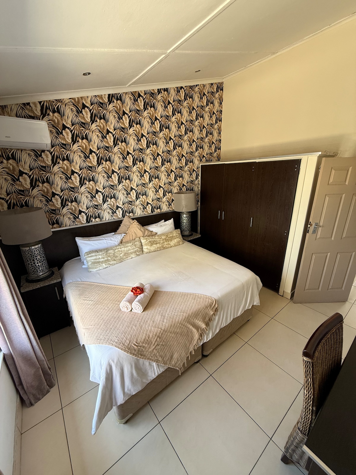 Dieses wunderschön eingerichtete Zimmer ist perfekt für diejenigen, die einen erholsamen Kurzurlaub in einer friedlichen Umgebung suchen. Unsere Zimmer verfügen über eine Vielzahl von Bettoptionen, frische Bettwäsche und weiche Kissen, um erholsamen Schlaf zu gewährleisten. Das Zimmer verfügt zudem über einen Smart-TV mit Netflix und kostenlosem WLAN, sodass du mit deinen Lieben in Verbindung bleiben kannst, während du dich entspannst. Das eigene Badezimmer ist geräumig und elegant, mit luxuriösen Annehmlichkeiten, damit du dich während deines Aufenthalts verwöhnt fühlst.