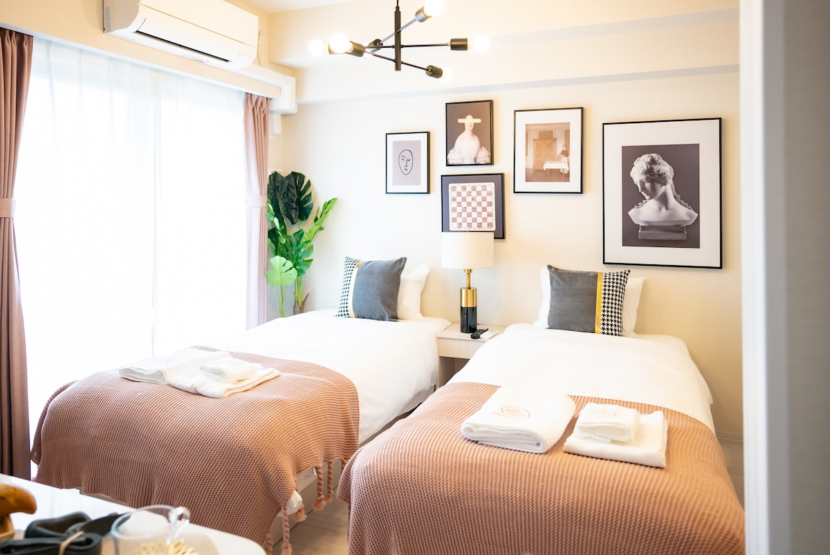 Perfekt für ein Date! ★Neu eröffnet im Februar 2022! ★zwei 0,9 m x 2 m Einzelbetten ★5 Gehminuten vom Bahnhof Nihonbashi entfernt ★6 Gehminuten von Dotonbori entfernt ★Highspeed-WLAN inklusive ★Wir verwenden nur Produkte von großen japanischen Herstellern für alle Haushaltsgeräte. ★Waschtrockner vorhanden ★Du kannst Internetvideos wie Netflix und Hulu sowie terrestrische TV-Programme auf deinem 4K-Fernseher ansehen! * Online-Videodienste können nur von denjenigen angesehen werden, die ein Konto haben.
