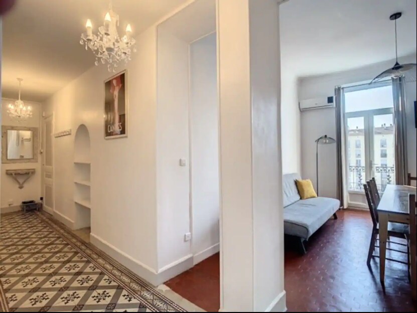 *CONGRÈS/ VACANCES/ TELETRAVAIL *Idéalement situé au cœur de la vieille ville, rue Meynadier proche du marché Forville, tout se fait à pieds *Proche plages et Palais des Festivals, rue piétonnière, authentique et typique du centre historique de Cannes *Au 4ème étage SANS ASCENSEUR, climatisé, studio tout confort *Grande hauteur sous plafond, cosy et chaleureux. Vous dormirez au calme mais dès la porte du bâtiment franchie, l'animation des restaurants, du marché et des commerces est là !