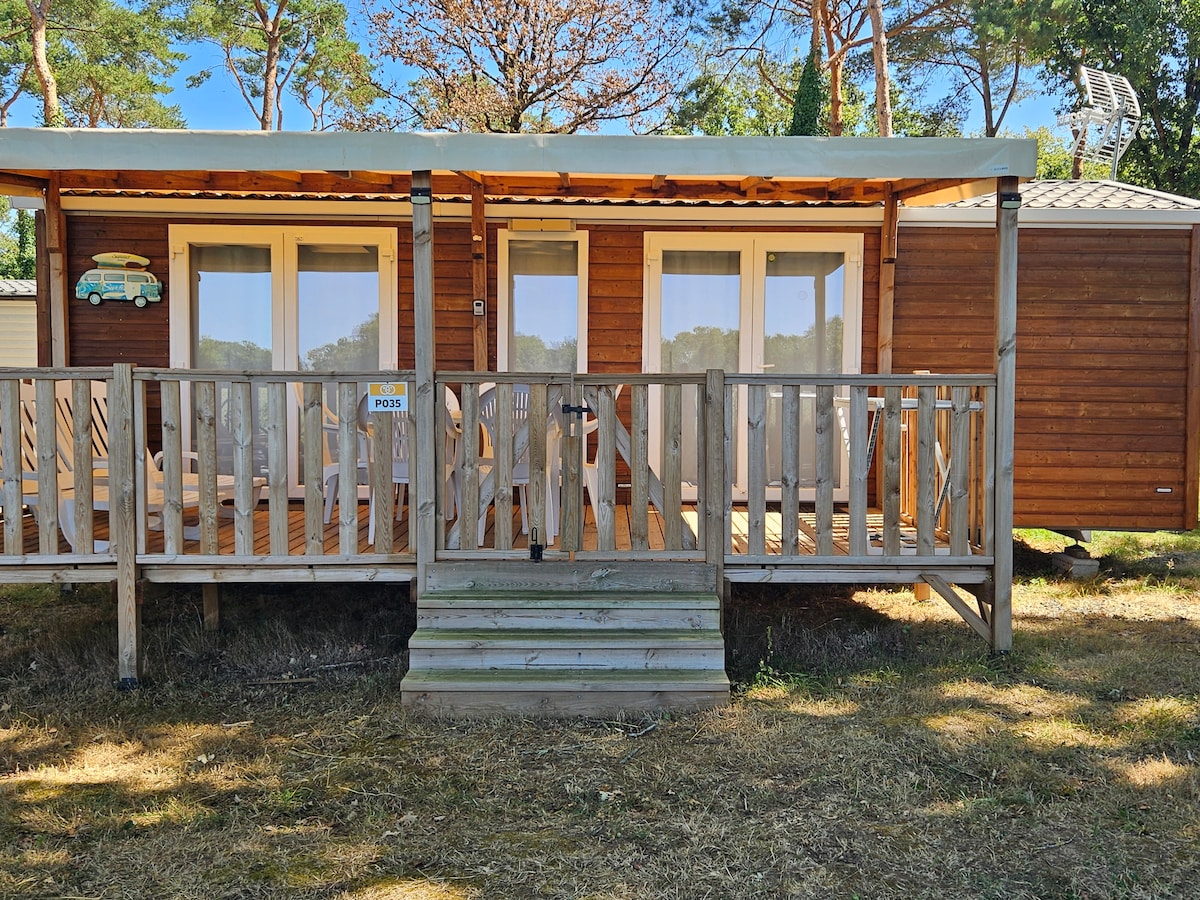 Mobilheim mit Klimaanlage auf einem Campingplatz im Herzen der Wälder, totale Entspannung mit verschiedenen Aktivitäten und Einrichtungen, beheizter und überdachter Pool, der von Mai bis Mitte September geöffnet ist, City Park, Golf, Teich, Waschsalon gegen Gebühr, direkter Blick auf die Felder, Nichtraucher, geschlossene Terrasse, kostenloser Parkplatz, alle Annehmlichkeiten und Küchenutensilien, Bettwäsche wird nicht zur Verfügung gestellt. 30 Minuten vom Puy du Fou, 20-40 km mehrere Sehenswürdigkeiten und Städte zu besuchen, 60 km ~ Strand und 15 km Geschäfte. Ende Juni Rockfestival Hellfest.