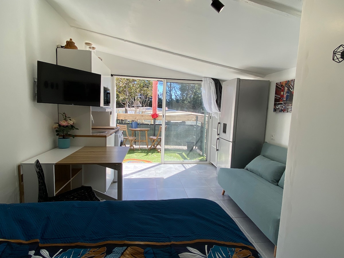 Unser Ferienhaus, Les Cigalons, empfängt Sie in einer Atmosphäre, die sowohl raffiniert als auch herzlich ist und Entspannung und Wohlbefinden fördert. Komplett mit Leidenschaft und Liebe zum Detail und im Geist von Bohème-Chic renoviert, ist unsere Hütte perfekt ausgestattet und funktional. In Aubagne gelegen, genießen Sie eine Fläche von 22 m2, mit gepflegter und raffinierter Dekoration sowie einen Blumen- und Aromagarten von mehr als 5000 m2, um Ihre Sinne zu schärfen.