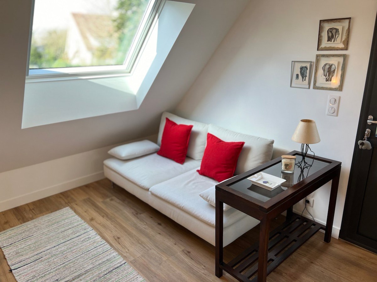 Studio independant situé au calme dans un écrin de verdure , aux portes de Nantes. Idéal pour une ou deux personnes, il accueille néanmoins jusqu'à 4 couchages pour un séjour de courte durée ou avec enfants. Construit avec des matériaux bio-sourcés, vous pourrez travailler ou vous ressourcer en WE ou vacances au coeur d'un habitat neuf tout confort et pensé que vous vous sentiez comme à la maison. Situé au fond de notre jardin, l'accès est autonome et indépendant, le parking est sur place.