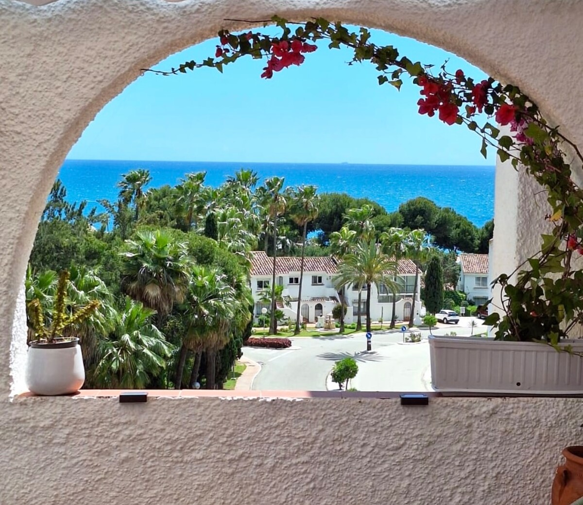 traumhafte, nagelneue geschmackvolle Wohnung mit Blick aufs Meer - Mitten in La Cala de Mijas - komplett neu renoviert & ausgestattet & super gemütlich eingerichtet - Diese Wohnung verbindet das einmalige Flair von Sonne & Meer, Wohlfühlen- Entspannen und " Mitten drin Sein im Geschehen" Eisdielen, Restaurants & kleine Boutiquen alles ist in Fussnähe - Zu den nahgelegenen wunderschönen Golfplätzen bist du in 5 Minuten mit dem Taxi . Sei willkommen und geniesse das schöne La Cala de Mijas.