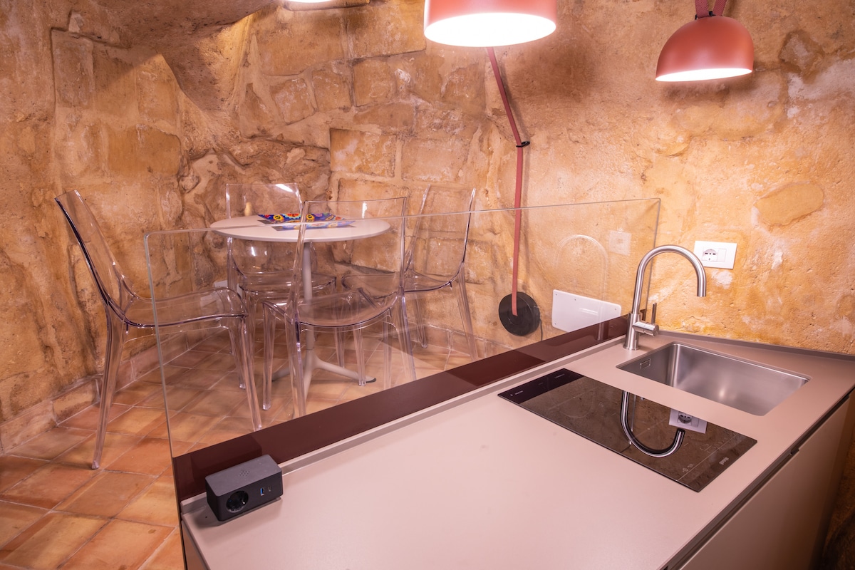 The four apartments making up ” La Corte dei Cavalieri ” represent the evolution of a peculiar way of life in the Sassi, that the architectural restoration work carried out until now has kept fully recognizable. A recent and careful renovation work has turned this ancient housing complex into modern, functional, comfortable and tastefully furnished apartments.The Knights’ Court is named after the historic and picturesque “Knights of Maria Santissima della Bruna”, patroness of Matera;