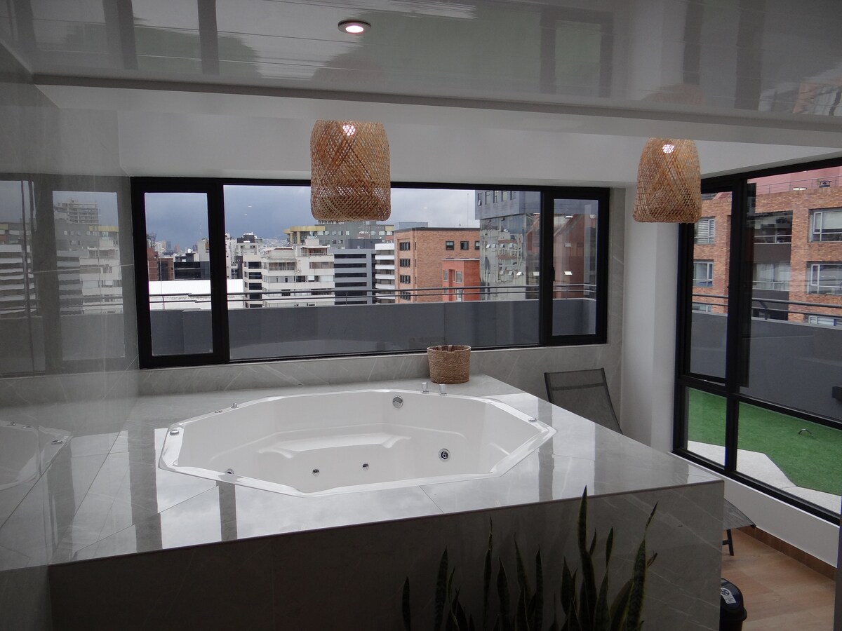 Edificio EDGE TOWER, piso 15 Disfrute de una experiencia de lujo en uno de los edificios más exclusivos de Quito. Este elegante departamento, ubicado en pisos altos, ofrece una vista espectacular de la ciudad, una ubicación inmejorable y un alto estándar de servicio. Para estadías prolongadas, incluimos sin costo adicional un servicio de limpieza profesional, garantizando siempre su comodidad y bienestar. *el área del spa está deshabilitado por cuestiones de mantenimiento profundo*