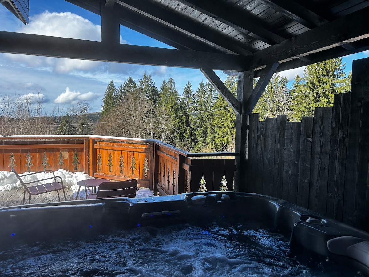 La Cabane de Lulu, nichée sur les hauteurs de Bussang. Ce charment chalet offre un cadre paisible où vous pourrez profiter d'un séjour détente. Entouré d'un parc animalier abritant chèvres et poneys, véritable paradis vert. Vous pourrez vous détendre dans le Hot Tub, tout en admirant la vue. Le chemin d'accès est raide mais entièrement goudronné, vous pourrez vous garez juste devant le chalet. Veuillez noter qu'en hiver, il faut se garer à 80 m de l'entrée en raison du risque de verglas.