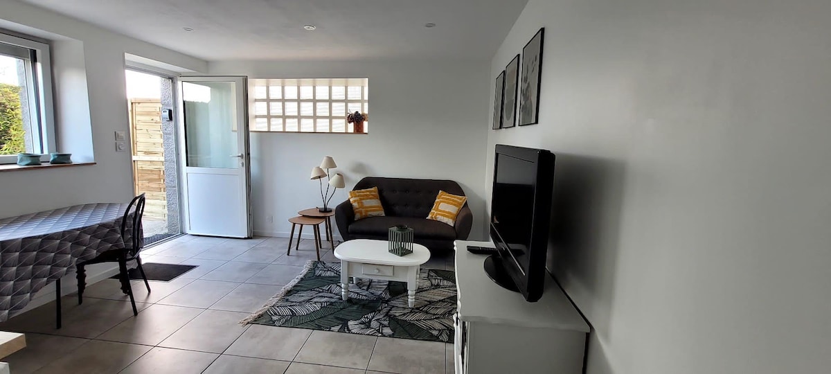 Unabhängige Unterkunft von unserem Haupthaus (im Erdgeschoss), bestehend aus einem hellen Wohnzimmer von 16 m2, einem Schlafzimmer von 10 m2, einem Badezimmer und separatem WC. Der Hauptraum führt auf eine unabhängige und abgeschirmte Terrasse. Nur einen Katzensprung vom zentralen Platz von Malestroit entfernt, haben Sie alle Annehmlichkeiten, ohne Ihr Fahrzeug zu benutzen. Handtücher stehen bei Bedarf zur Verfügung.
