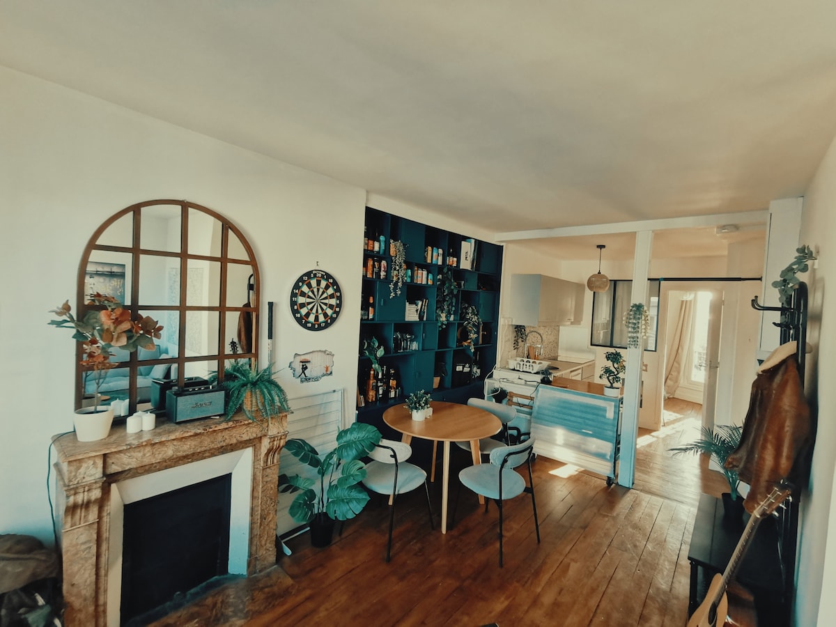 Kürzlich renovierte Wohnung, sehr sauber und sehr funktional. Hell und relativ ruhig für eine Stadt wie Paris. Dies ist meine Unterkunft, ich hoffe, dass Ihnen die Atmosphäre, die ich dort geschaffen habe, gefallen wird. Ich habe immer Mühe, sie zu verlassen! In einem beliebten und sehr zentralen Viertel gelegen. Es gibt alle Annehmlichkeiten: Lebensmittelgeschäfte, Post usw., aber auch Bars und Restaurants, den Kanal und die Parks (Villette und Buttes Chaumont) sowie das Kunstzentrum 104 um die Ecke.