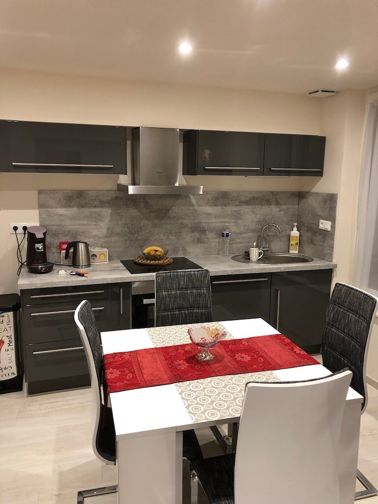 Suite au cœur de Montargis. Séjour avec cuisine équipée ( four, micro ondes, plaque induction,frigo, lave vaisselle, machine à laver, nespresso ), espace repas, Tv avec canal + chambre avec lit 160x200, Tv avec canal, literie premium, salle d'eau italienne, Wi-Fi haut débit, clim, serviettes et savons inclus. Rue calme, parking gratuit ou privé ( option ), arrivée autonome avec serrure connectée. Service en option : petit déjeuner, borne électrique