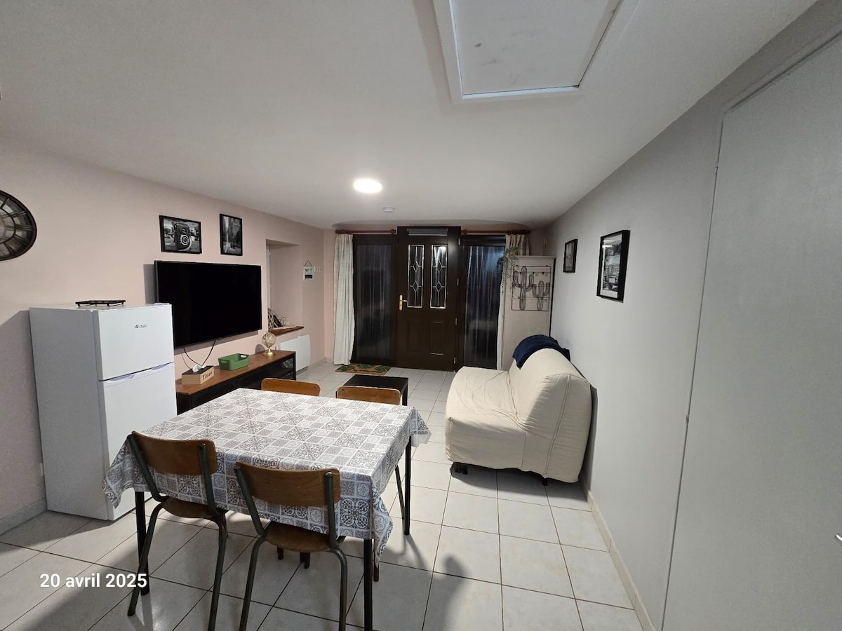 Charmant studio comprenant: Espace nuit avec un lit de 140 cm Salon avec un canapé BZ pouvant accueillir 2 enfants Coin repas Douche et WC. Serviettes, linge de lit fournis. Profitez d'un séjour agréable dans cet espace fonctionnel et bien agencé, à deux pas des commodités. Réservez dès maintenant ! A 1 km des commerces de proximités Puy du fou à 35 min 15km au alentour karting, accrobranche, zoo, sentiers de randonnées. 30km marais poitevins, balade en barque. 70km Plage
