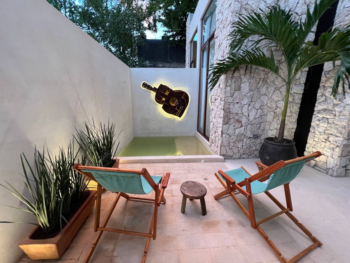 Private home with a great balance of colonial and modern. Perfect for one to two people who enjoy indoor/outdoor living. The house has amazing airflow with 16 foot ceilings throughout and an air conditioned bedroom. The patio and private dipping pool make the house a perfect refuge from the hustle and bustle of downtown. Only 1 block away from La Plancha Park, Merida’s new “Central Park” and 2 blocks from the start of Calle 47 Ruta de Gastronomia, the newly pedestrinized restaurant district.