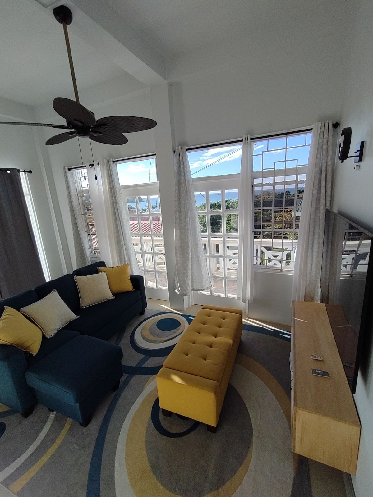 Diese Unterkunft befindet sich in einem ruhigen Viertel, das in der Nähe der Stadt und sowohl des Luft- als auch des Seehafens liegt. Sie befindet sich über dem Parkplatz meines Hauses, sodass meine Familie, Eltern und ich leicht erreichbar sind. Es ist eine einladende, voll möblierte Wohnung mit einem Schlafzimmer und einem schönen Meerblick. Die Fenster sind große Glasscheiben, die frische Luft und Licht zulassen. Sie ist mit allen Annehmlichkeiten ausgestattet: