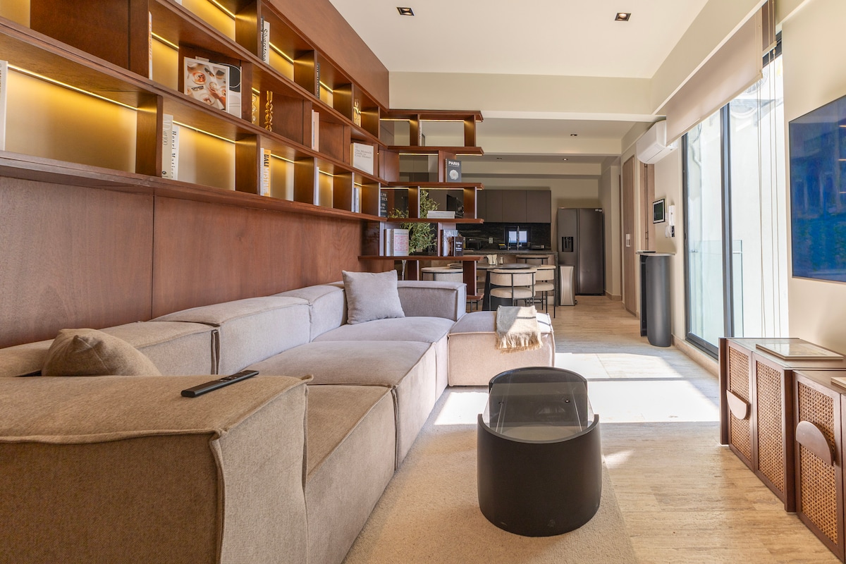 This one of a kind and cozy pent-house is located inside one of the most emblematic developments built in La Condesa neighborhood. Its architecture is a contemporary version of Art Deco. A style that defines La Condesa. It is located in a beautiful, tree-lined area. The atmosphere is very family-oriented, with young and vibrant people. The surroundings invite us to step out, walk, relax and discover new experiences.