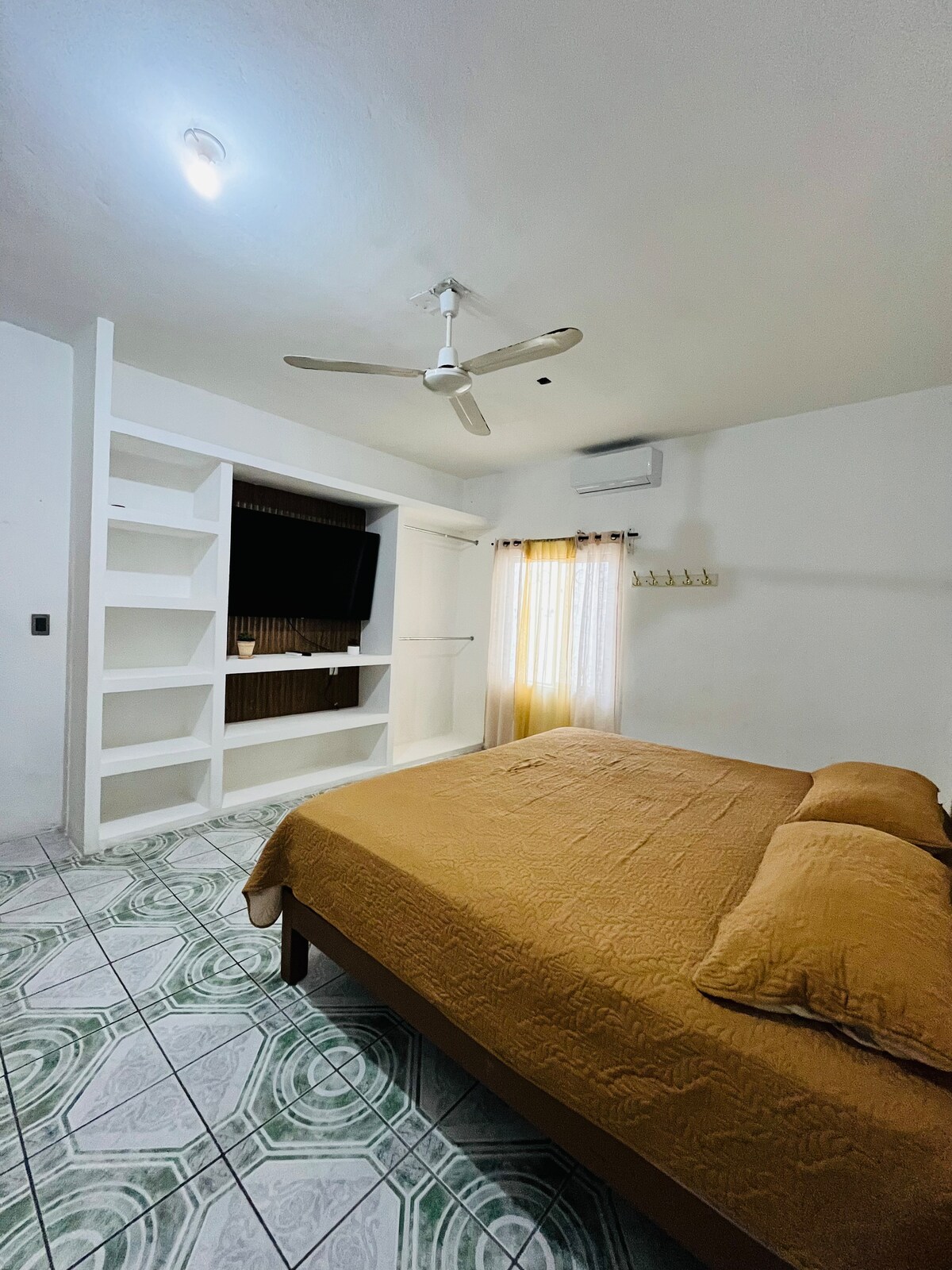 Betrete dein eigenes privates tropisches Paradies mit Bougainvillea, die über die Wände und Palmenblätter in deinem Wohnzimmer im Freien mit Essbereich und Terrasse fließen. Das Wohnzimmer verfügt über eine schöne Beleuchtung, einen Deckenventilator und Steckdosen für deine Elektronik, um mit Freunden zu Hause in Kontakt zu bleiben. Es gibt eine Küchenzeile, damit du deinen morgendlichen Kaffee genießen kannst, bevor du die wenigen Blocks in die Stadt gehst oder den Tag verbringst. Und wenn du zurückkehrst, kannst du in der Hängematte entspannen oder den Fang des Tages im Grill kochen.