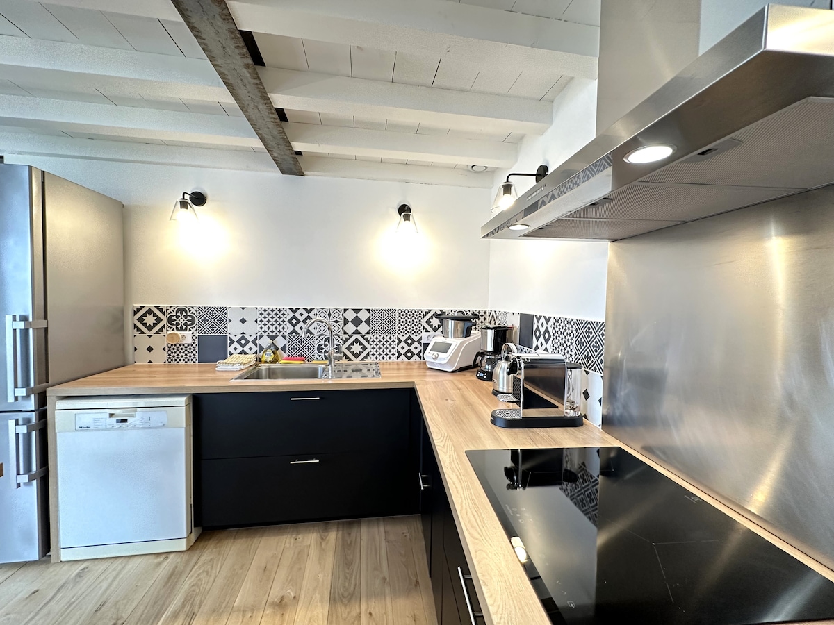 Brandneue Wohnung von 45 m2, sehr schön - Ruhig mit eigenem Hof - Gartenmöbel Sehr großes Zimmer - Großes Bett 160 cm - kleines Bett von 90 cm Badezimmer - Dusche Wohnzimmer - Sofa - Fernseher - WLAN-Internet Offene Küche, eingerichtet und ausgestattet - Kühlschrank - Einbauofen - Gasherd - Mikrowelle und Senseo-Kaffeemaschine - Geschirr und Wasserkocher Sichere Parkplätze auf dem Grundstück. 2 Fahrräder stehen kostenlos zur Verfügung