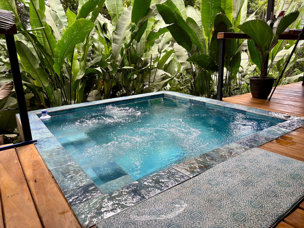 Speziell entwickelt, um unsere Airbnb-Nutzer zu verwöhnen, indem wir ihnen luxuriöse und funktionale Räume und einen Hauch von Eintauchen in die Natur bieten, die dieses Bedürfnis nach Ruhe und Entspannung erfüllen. Strategisch gelegen, nur 5 Minuten vom Stadtzentrum von La Fortuna entfernt, verfügt diese Wohnung über ein privates Innen-Tauchbecken/einen Whirlpool, einen schönen Blick auf den Vulkan Arenal von ihrem Balkon und ihrer Küche, eine Klimaanlage im Zimmer sowie ein Badezimmer mit einer offenen Dusche mit Glasdach.