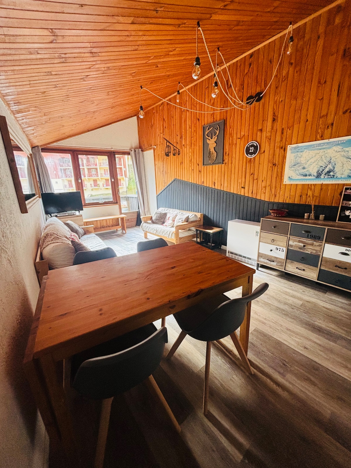 Entièrement rénové, cet appartement traversant est idéal pour un séjour en famille ! possibilité de louer le studio mitoyen pour un séjour encore plus fou ;0) Situé quartier de l'Aiguille, l'accès aux pistes est direct Les parents peuvent suivre les performances de leurs enfants depuis la terrasse, vue plongeante sur le club ESF et la piste. Confort et élégance sont au rdv A 5mn à pieds des commerces et 50m du cinéma Parking gratuit Une navette circule aussi dans la station (voir période)