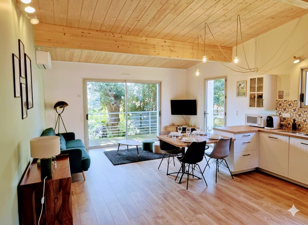 Passez un séjour exceptionnel, dans un chalet tout neuf, à moins de 5 minutes du Grand Parc du Puy du Fou. Ce chalet d'une superficie de 55m² se compose de : - 1 pièce de vie avec cuisine équipée et ouverte sur le salon, - 1 chambre avec un lit Queen Size (160x200cm), - 1 chambre avec 2 lits simples (90x200), - 1 salle d'eau avec douche à l'italienne et toilettes