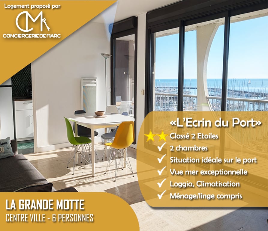 Venez vous détendre dans ce superbe logement à la vue imprenable sur le Port de La Grande Motte. Situé au coeur de la station, à proximité de toutes les commodités nécessaires (restaurants, bars, glacier boutiques ...etc.) pour passer un agréable séjour en compagnie de vos proches. Vous pourrez lézarder sur le sable des plages qui ne se trouvent qu'à quelques mètres. Un petit coin de paradis pour les petits comme pour les grands !