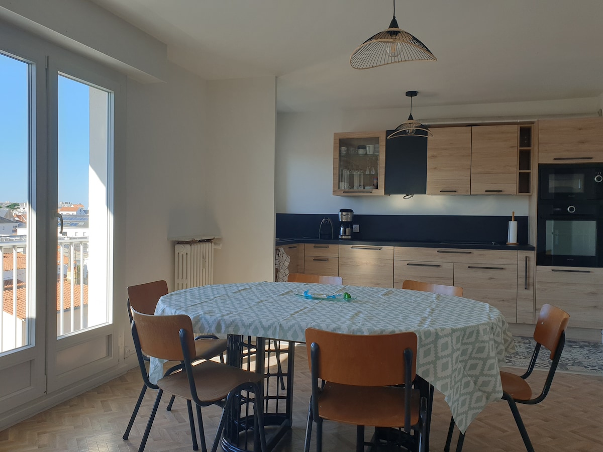 Erliegen Sie verliebt sich in den Charme unseres Paradieses "Le Charm 'Sablais" mit einem unglaublichen Blick auf die Bucht von Olonne: drei Kilometer feiner Sand und eine nach Süden ausgerichtete Bucht, der Hauptstrand von Les Sables d' Olonne und einer der schönsten Strände Europas. Ursprünglich und verliebt in Les Sables d 'Olonne, möchten wir mit Ihnen unsere wunderschöne Wohnung mit aktueller und gepflegter Dekoration mit Meerblick, Jacuzzi und Balkon-Terrasse teilen.