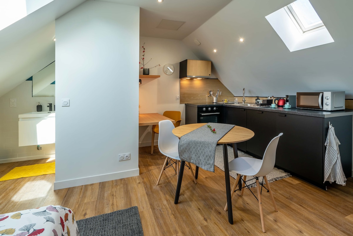 Enjoy a romantic escape in our Loft **** in Les Sables d’Olonne, designed for couples looking for relaxation and a special moment together. This charming love nest has been fully renovated with a cosy atmosphere inspired by a luxury hotel suite. Relax in the private double jacuzzi bathtub and enjoy a peaceful stay in a quiet street, just a few minutes from the train station and 13 minutes from the beach promenade and harbour.