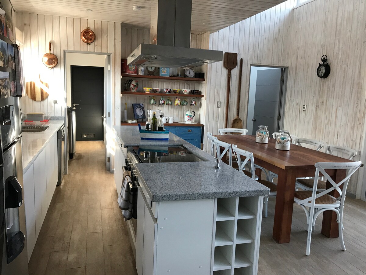 Mach Urlaub mit deiner Familie und Freunden an diesem schönen und ruhigen Ort. Genießen Sie die Landschaft und den Strand gleichzeitig. Erfreue dich an einer völlig natürlichen Umgebung. Es verfügt über drei Schlafzimmer und drei Badezimmer, zwei Doppelbetten und zwei Etagenbetten, das Wohnzimmer hat eine integrierte Küche mit einem großen Tisch für 10 Personen Die Aussicht ist dynamisch, sowohl bei Tag als auch bei Nacht, das Licht und der Wind sorgen dafür, dass man von der gleichen Stelle aus verschiedene Landschaften beobachten kann. Die Terrasse verfügt über einen Grill und einen Feuerstelle