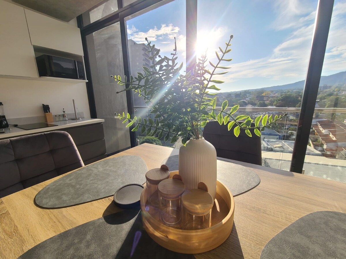 Moderne, voll ausgestattete Wohnung mit Panoramablick auf den Vulkan San Salvador. Es befindet sich im 9. Stock einer Wohnanlage in Santa Tecla und ist ideal zum Arbeiten, Entspannen und Erholen. Umgeben von geräumigen Grünflächen und Erholungsräumen, die dir helfen, deinen Tag zwischen Arbeit, Familie, Bewegung und Erholung auszubalancieren. Günstig in der Nähe von Supermärkten, Restaurants und einer Vielzahl von Geschäften, mit schnellem Zugang zu den Hauptstraßen von San Salvador, La Libertad und der westlichen Region.