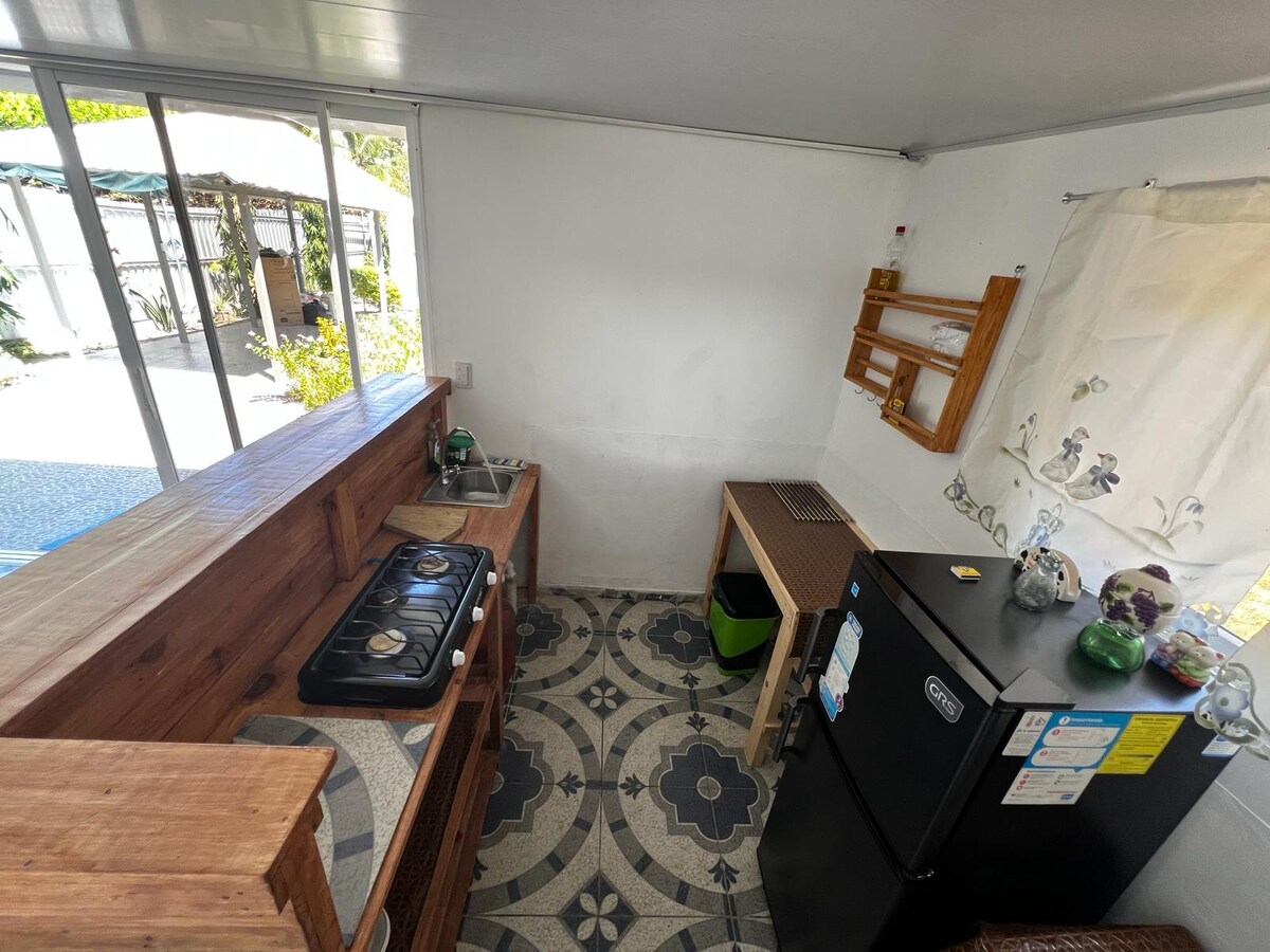 Willkommen in unserer tropischen Villa! Unser Strandgrundstück wurde in unsere Villa und ein voll ausgestattetes Gästehaus unterteilt. Wir freuen uns sehr, dich als Gast begrüßen zu dürfen. Tritt nach draußen zum sofortigen Strandzugang auf der anderen Straßenseite und genieße den malerischen Blick auf Estero de Jaltepeque und majestätische Vulkane. Entspanne dich im Komfort mit voll ausgestatteten Annehmlichkeiten, klimatisierten Zimmern und gemütlichen Betten. Egal, ob es sich um einen Wochenendausflug mit der Familie oder einen längeren Aufenthalt handelt - wir laden dich ein, als unsere geschätzten Gäste Erinnerungen im schönen El Salvador zu schaffen.
