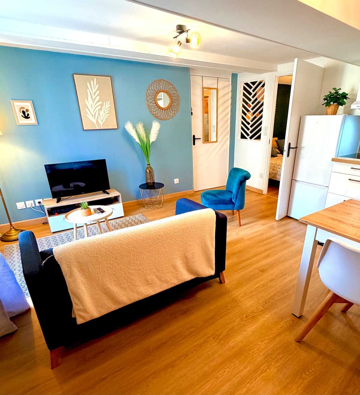 Voici le petit frère de l’appartement « bienvenue chez vous! » après de long mois de travaux il est enfin disponible ! Appartement en rez de chaussée avec entrée indépendante. Vous y trouverez tout le confort moderne, cuisine équipée, internet, tv 138 cm dans le salon, machine à laver, écran cinéma de 200 cm avec Netflix, Amazon prime dans la chambre, un espace extérieur privé (en cours d’aménagement), une place de parking le tout à 15 min À PIEDS du plein centre ville ! WIFI