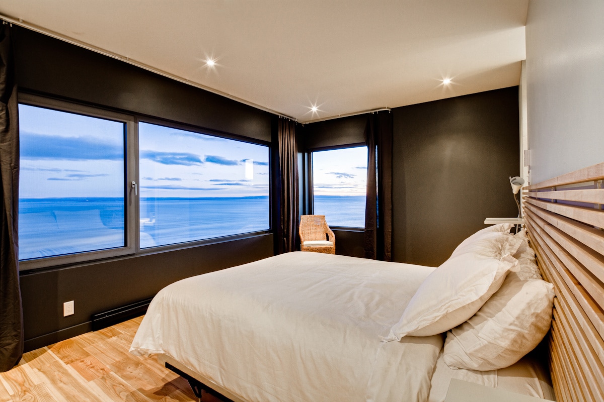 Das Zenith befindet sich in der Domaine Charlevoix, 7 Minuten von Baie St-Paul, 20 Minuten vom Massiv und 30 Minuten vom Casino entfernt. Unser Chalet liegt an einem Berghang auf 350 m Höhe und wurde so konzipiert, dass Sie sich mitten in der Natur und in der Nähe der Sehenswürdigkeiten der Region entspannen können. Sie haben Zugang zu Ökotourismuspfaden auf dem Gelände selbst. Diese voll ausgestattete Prestige-Residenz wird Ihre Erwartungen mit ihrem atemberaubenden Blick auf den St. Lorenz und die Berge erfüllen. Betriebsnummer 298730