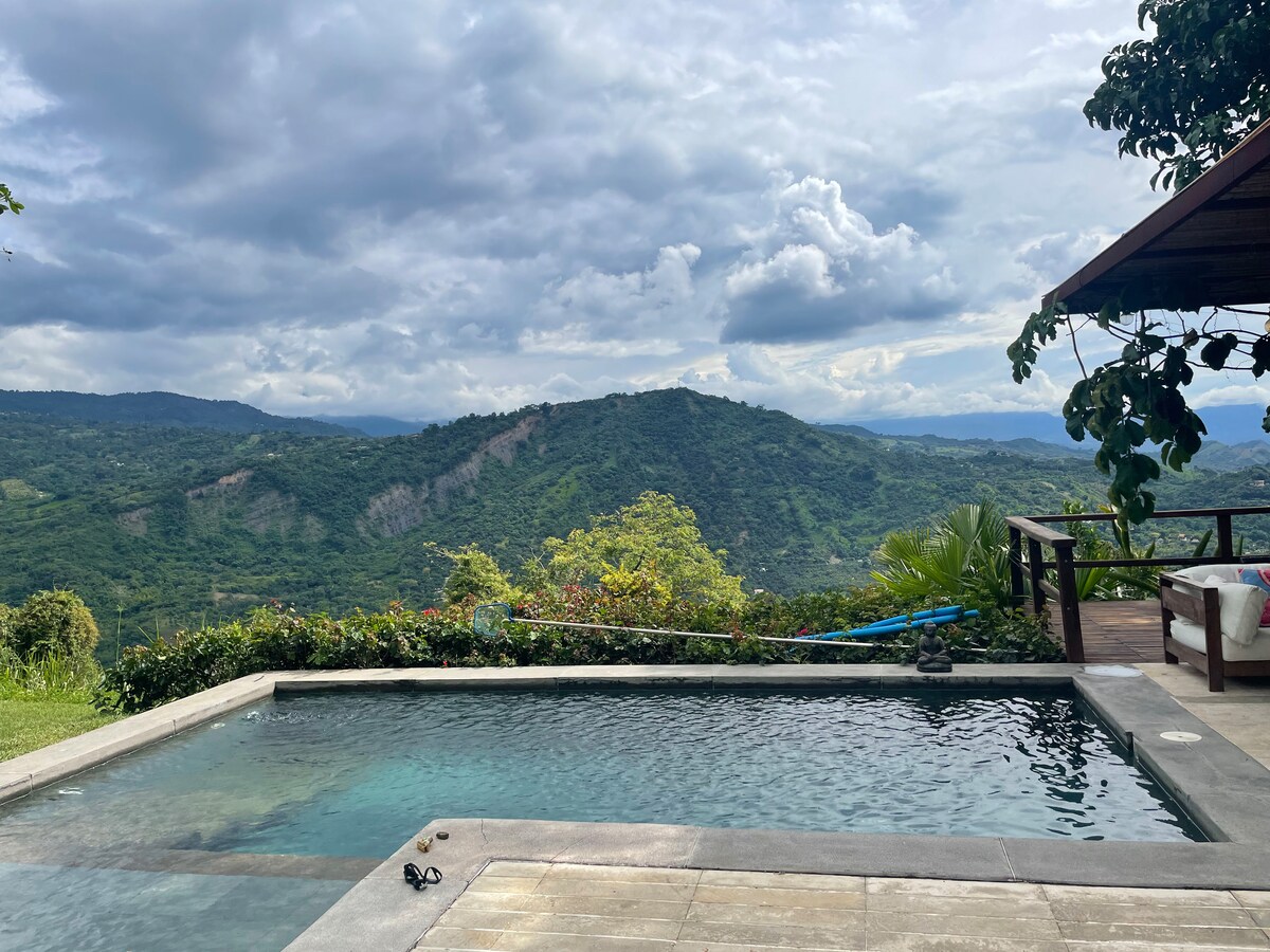 Ferienhaus in der Nähe von Anapoima, mit einer der besten Aussichten in Kolumbien. Ideal zum Entspannen oder Telearbeiten inmitten der Natur. Es befindet sich in einem geschlossenen und sicheren Komplex und verfügt über: 🏊♀️ Privater Swimmingpool mit Panoramablick Heißwasser🛁 Whirlpool 📶 High-Speed-WLAN (ideal für Telearbeit) Nationales 📺 Fernsehen und Netflix 🌬️ Fans Gas 🔥 Grill und Außenbereich 🌞 Sonnenliegen Ruhige und private🌳 Umgebung 🐾 Haustierfreundlich
