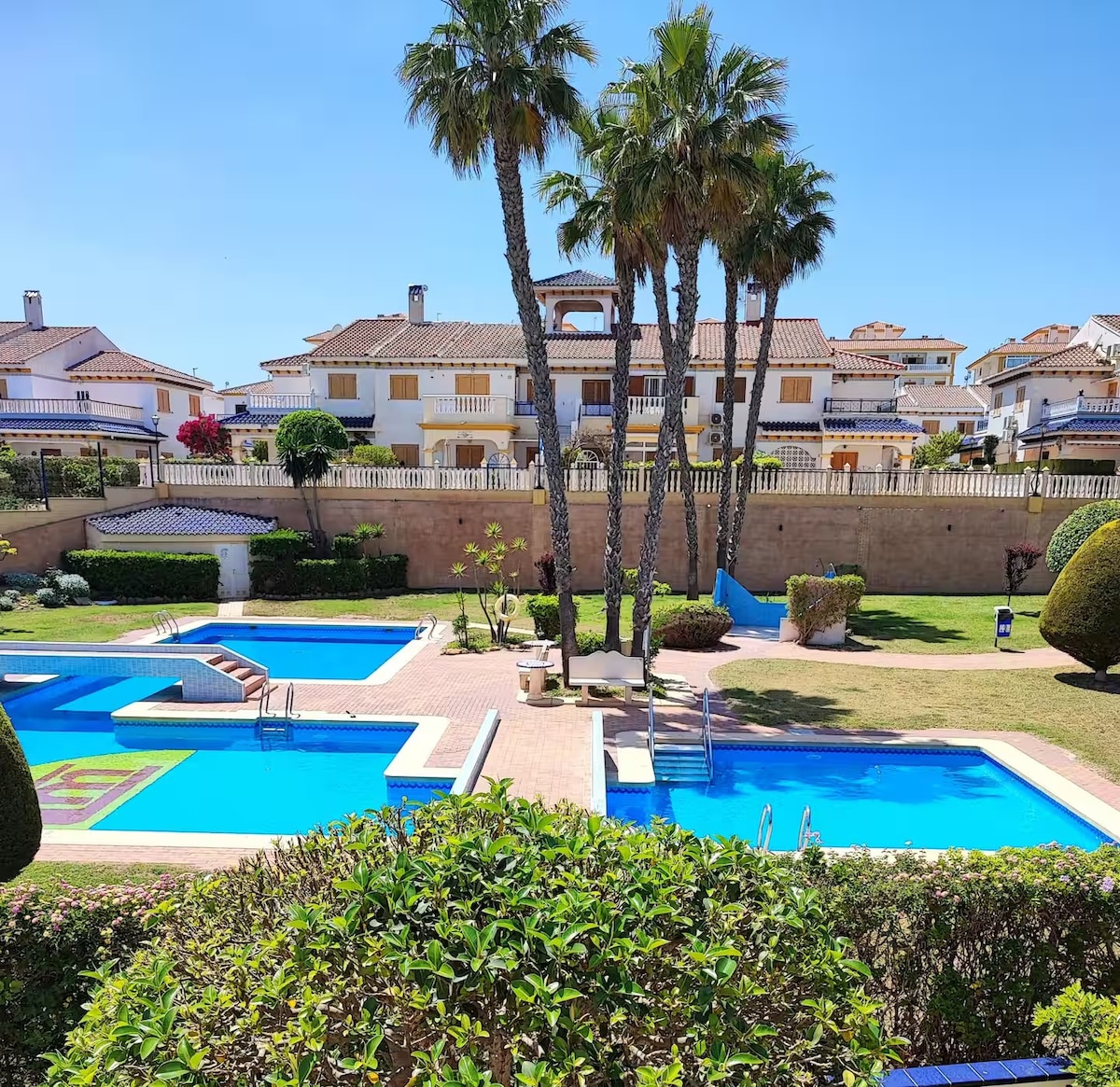 ✨ Brand-new vacation bungalow in Lago Jardín, Los Blacones Torrevieja. 1 bedroom with built-in wardrobe and Smart TV, 1 bathroom with walk-in shower, and living room with Smart TV (1500+ international channels) and A/C. High-speed Wi-Fi, furnished glass-enclosed terrace, and fully equipped kitchen. Community pool, on-site restaurant, only 2,5 km from the beach. Easy self check-in/out with PIN code and full guest support. 🌴 StayOrihuelaCosta #PRP007