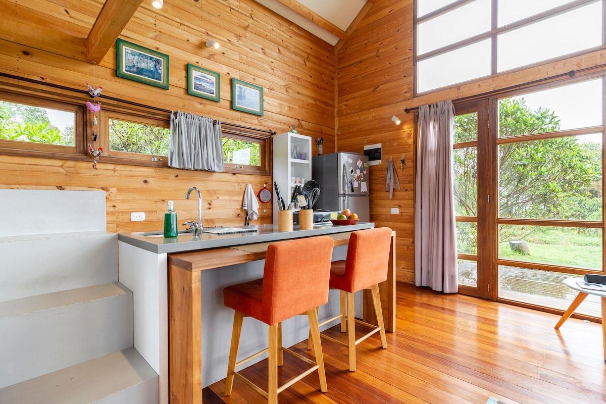 A small, charming, comfortable and cozy retreat in a calm and beautiful country setting overlooking a scenic and peaceful valley of pastoral landscapes, lots of birds, broad skies and panoramic views 1 hour from Medellín. A haven to forget about your life in the city. A perfect stay for couples or friends searching for rest or intimacy. It is also ideal for creators, digital nomads or mistics looking for inspiration and undisturbed solitude to pursue their arts, crafts and paths.