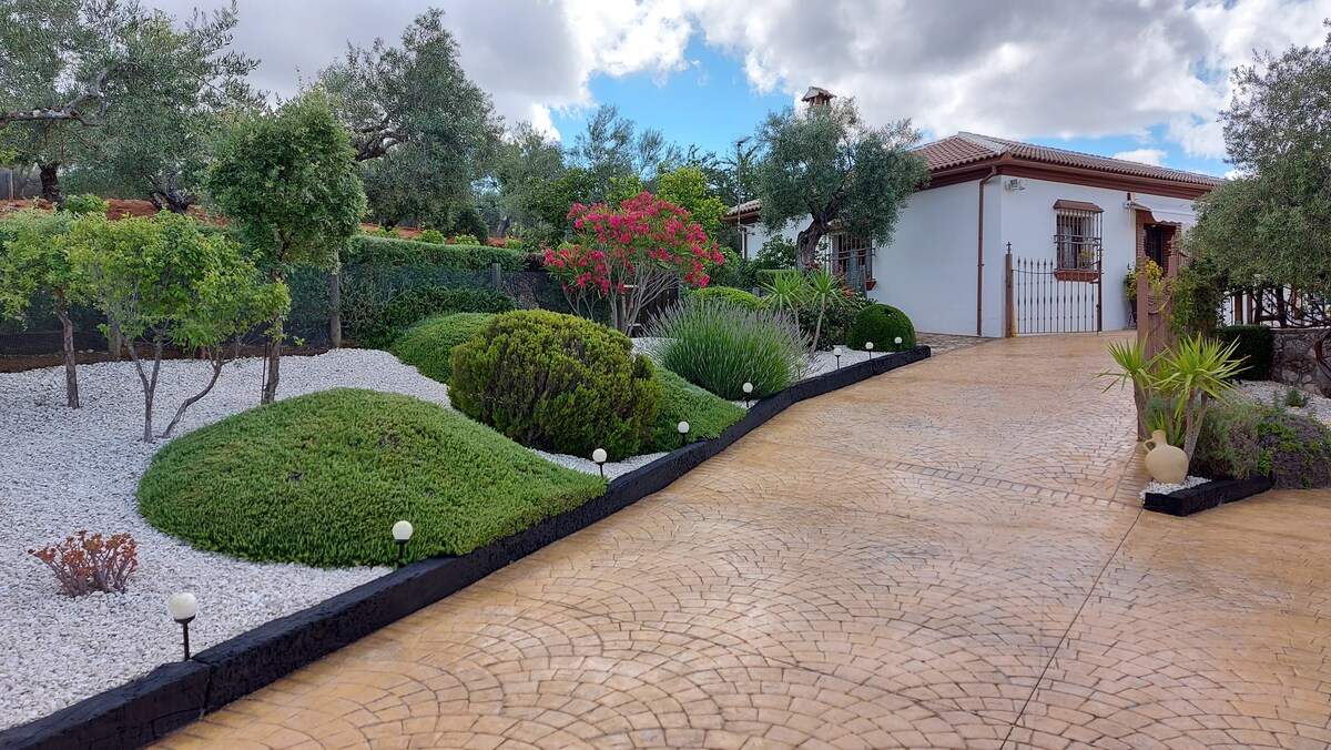 A beautiful rustic house to enjoy a couple in the middle of nature, with the comfort of a modern home. Impressive views from all the terraces and gardens full of flowers that surround it, with a hot tube, Balinese bed, hammocks, tables with their chairs and stone benches. It is in a landscape reserve full of birds, at the top of a hill, next to Caminito del Rey and El Torcal and in the centre of Andalusia to visit other cities. We love to share this little paradise with our guests! .
