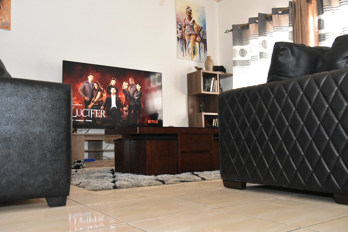 Willkommen in Just Home, einem neu erbauten schönen Haus im Lakeside-Viertel von Accra. Es ist ein voll möbliertes Haus, das aus zwei geräumigen Schlafzimmern mit eigenem Bad, einer Besuchertoilette, einem offenen Wohnzimmer und einer Küche, einem Balkon und einem sicheren Parkplatz besteht. Es gibt ausgezeichnetes WLAN, einen Standby-Generator, CCTV-Abdeckung für Ruhe und Sicherheit vor Ort rund um die Uhr. Die Unterkunft befindet sich in einer ruhigen Gegend mit Geschäften und anderen Annehmlichkeiten, die nur fünf Gehminuten entfernt sind.