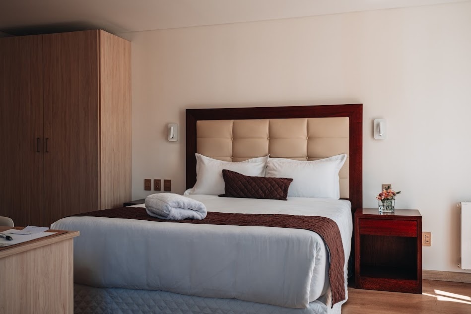 Bienvenidos a Fratelli Corp Apart Hotel. Disfrute la modernidad de nuestra Suite Junior en Fratelli Corp Apart Hotel, San Miguel. Ubicada en la zona más exclusiva de La Paz, cuenta con cama Queen, kitchenette y sala de estar. Incluye: - Desayuno Buffet. - Limpieza diaria y Recepción 24/7. - Wi-Fi de alta velocidad. Ideal para viajes corporativos, a pasos de los mejores restaurantes y centros de negocios de la Zona Sur. Una estadía segura y de alto nivel en la mejor ubicación.