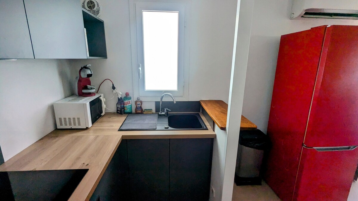 Studio cosy ⭐️⭐️⭐️ à la Petite Île : vue imprenable, piscine sur le toit et plage à 10 min !🌊🏖️ Vous rêvez d'un coin de paradis au cœur du sud de l'île ? Ce studio tout équipé, situé à la Petite Île, vous offre le meilleur des deux mondes : le calme d'un village et la proximité du Sud Situé à l'étage de notre Villa en fond d'impasse sans vis à vis avec terrasse vue mer 🌴 Ce que vous allez adorer : * La piscine en rooftop * Plage de Grand Anse à 10 min * La nature et le calme * Le studio équipé
