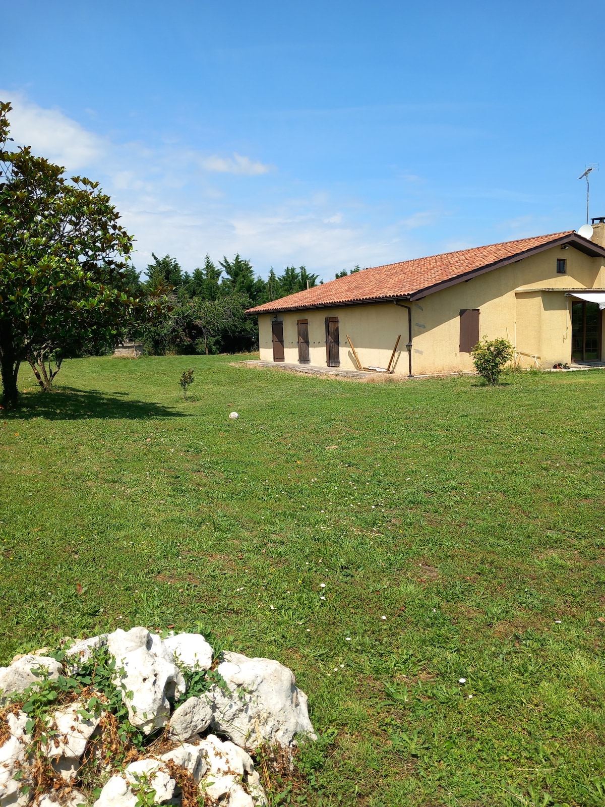 Situé en extrémité d'une longère en pierre typique de l'entre deux mers, sans vis à vis, cette maison de campagne vous offre un panorama sur les prairies entourant le petit hameau de trois maisons. Le logement est un ancien gîte rural fraîchement remis au goût du jour pour la location Airbnb, avec l'ajout d'une petite piscine creusée. Vous serez charmé par le calme et la sérénité de ce lieu tout à fait exceptionnel. Déconnectez vous pour mieux vous retrouvez.