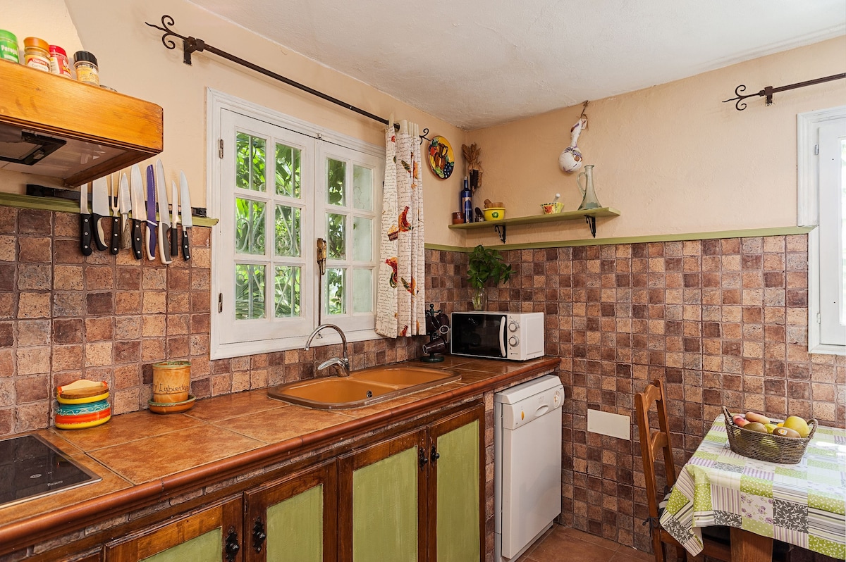 Schönes Haus im andalusischen Stil in ruhiger Lage, die Ruhe vermittelt. Panoramablick auf die Landschaft und das Meer im Hintergrund, an klaren Tagen sieht man sogar die Küste Marokkos. Sehr funktionell und einfach mit Eleganz eingerichtet. Das Erdgeschoss besteht aus WC, Wohnzimmer und offener Küche mit Zugang zur Veranda und Garten mit privatem Pool. 1. Etage: 1 Schlafzimmer-Suite, 1 Doppelzimmer und 1 Einzelzimmer, die sich 2 Badezimmer teilen. 2. Stock: Dachgeschoss mit Schlafsofa und Dachterrasse mit Aussicht.