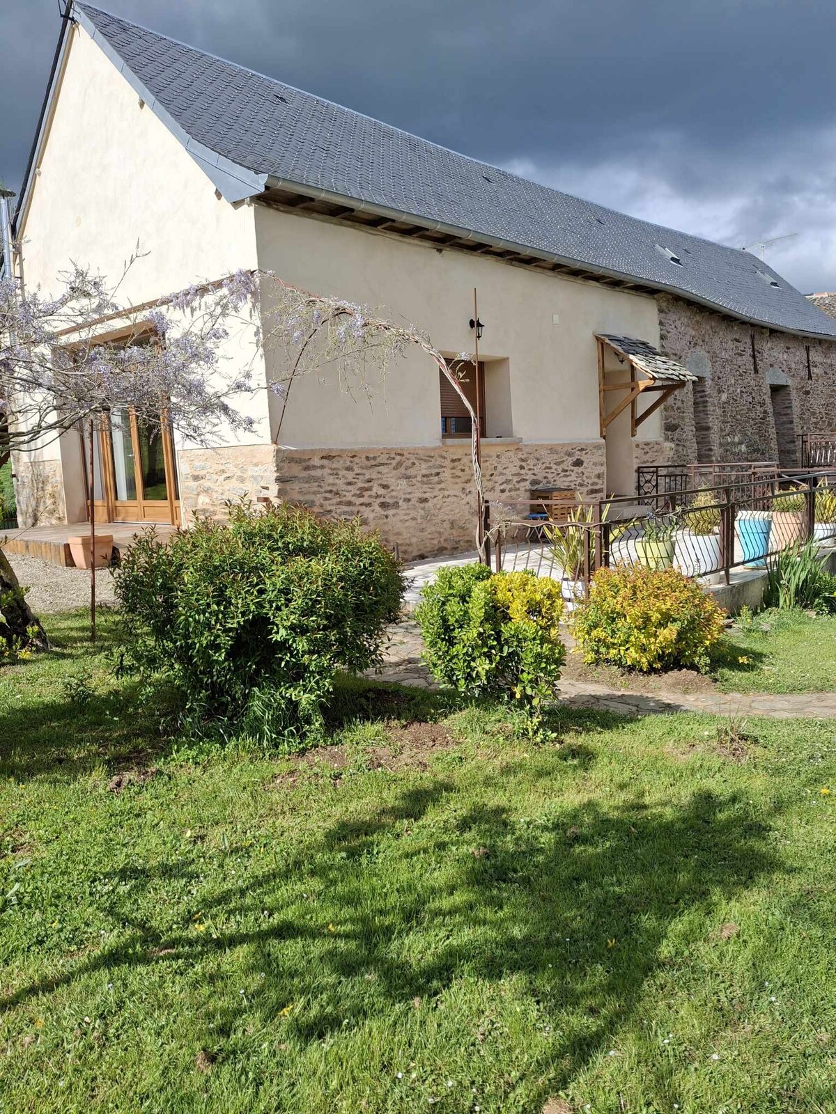 Schönes Nebengebäude/gesamte Unterkunft, die an ein Haus im Herzen eines ruhigen Dorfes angeschlossen ist, ideal für eine Familie mit Kindern. Moderne Ausstattung mit einer gemütlichen Note, um sich im Aveyron wohl zu fühlen. In der Nähe einer historischen Stadt, in der alle Annehmlichkeiten erreichbar sind.