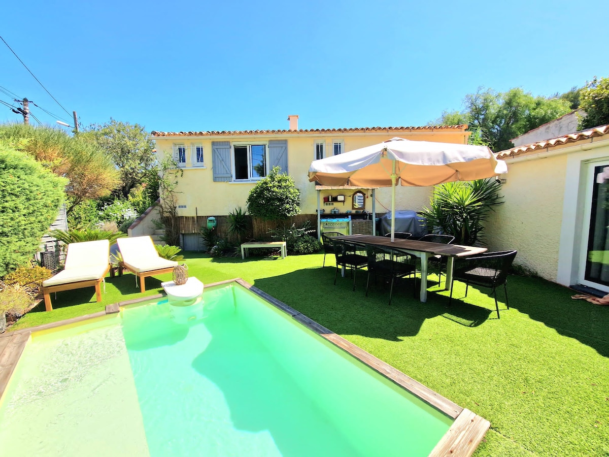 Ökologisches Haus mit Terrasse, 5 Personen; Möglichkeit für zusätzliche Schlafplätze; Privater Pool 4,2 m x 4,15 m vom 15. Juni bis 15. September außer sonntags; Parkplatz für 2 Autos im geschlossenen Hof; Perfekt für Familie oder Freunde in einer ruhigen Wohngegend. Zu Fuß zu den Stränden von Mar-vivo (5 Min.) und Sablettes (10 Min.). Alle Einkaufsmöglichkeiten in der Nähe zu Fuß erreichbar; 5 Minuten zu Fuß von den Unterhaltungsmöglichkeiten von Les Sablettes: Restaurants, Vergnügungspark für Kinder, Nachtmarkt… und Boot nach Toulon