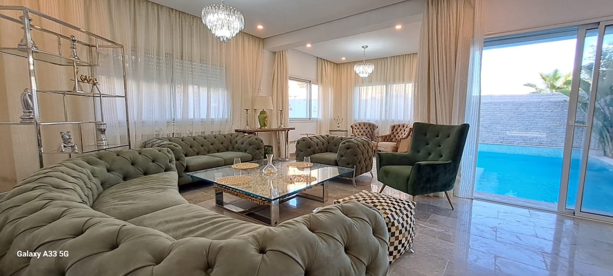 Eine schöne ästhetische Villa in La Soukra. Geräumige Villa und Garten mit sehr schöner und großer Swimmingpool. Die Villa besteht aus 4 Schlafzimmern, einem sehr geräumigen Abstellraum, einer ausgestatteten Küche und 3 Badezimmern . Das Hotel liegt 10 Minuten vom Flughafen entfernt. Unsere Nachbarschaft ist bekannt für ihre Ruhe, und wir bitten unsere Gäste, unsere Community zu respektieren, indem sie keine Partys oder laute Zusammenkünfte im Haus veranstalten.