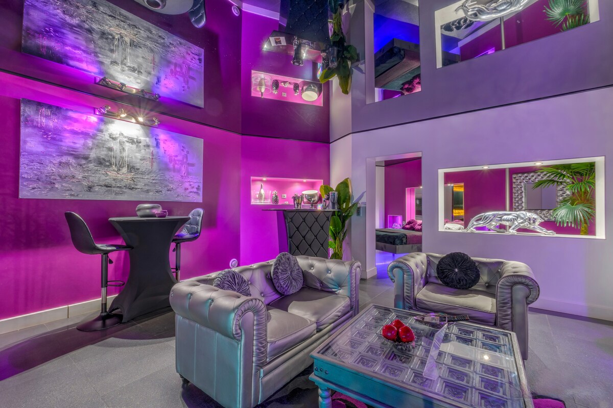 La suite La Désirade à la décoration lounge moderne vous transportera dans un endroit calme et majestueux grâce à sa piscine intérieur vitrée privative , équipée d'un banc à bulles (jacuzzi), et d'une cascade d'eau. Elle dispose également d'un grande douche/hammam pour vous relaxer au mieux dans cette suite de 70m2. Il sera mis à votre disposition serviettes de bain, gel douche/shampooing et un sèche cheveux. Equipée de 2 écrans de télévision (Netflix, Google, Youtube)