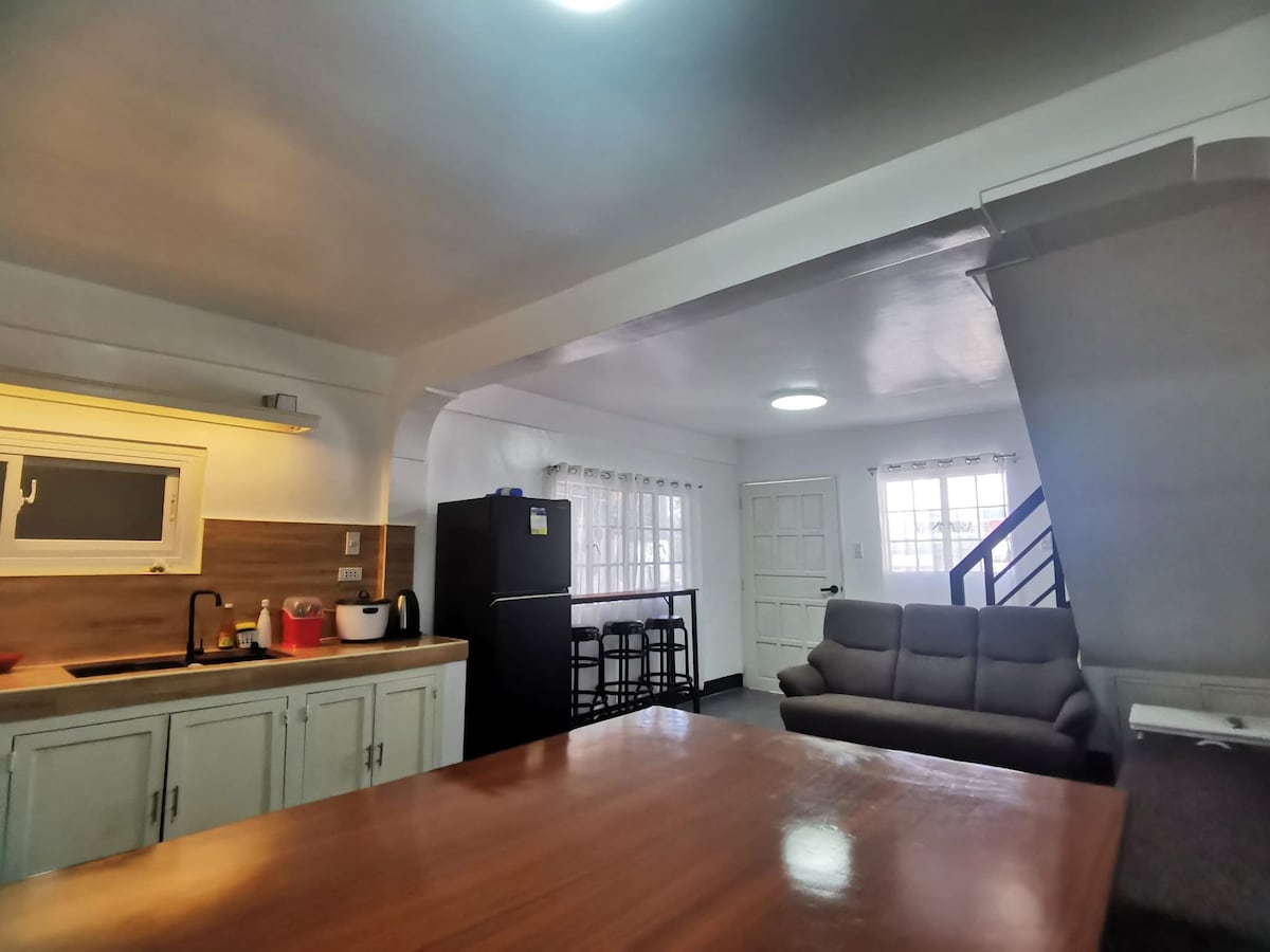 Maximal 10 Personen. 2 Zimmer, 1 großes Loft Rm1-1 Queensize-Bett, Sofa Rm2-2 Einzelbetten Loft – 1 Queensize-Bett, 2 Einzelbetten, 1 ausziehbar Sala mit Schlafsofa und Ausziehbett 3T&B warme/kalte Dusche Handtücher Voll ausgestattete Küche mit kostenlosem 5-Gallonen-Wasser während deines Aufenthalts Balkonbereich Globe Home WLAN/Smart-TV Videoüberwachungssystem Dies ist eine untere Ebene unter dem Hauptgeschoss. Hat Stufen nach oben und unten. Bitte informiert euch über die Wetterbedingungen auf der PAGASA DOST-Seite. Wir sind eine Privatunterkunft und verwenden keinen Generator.