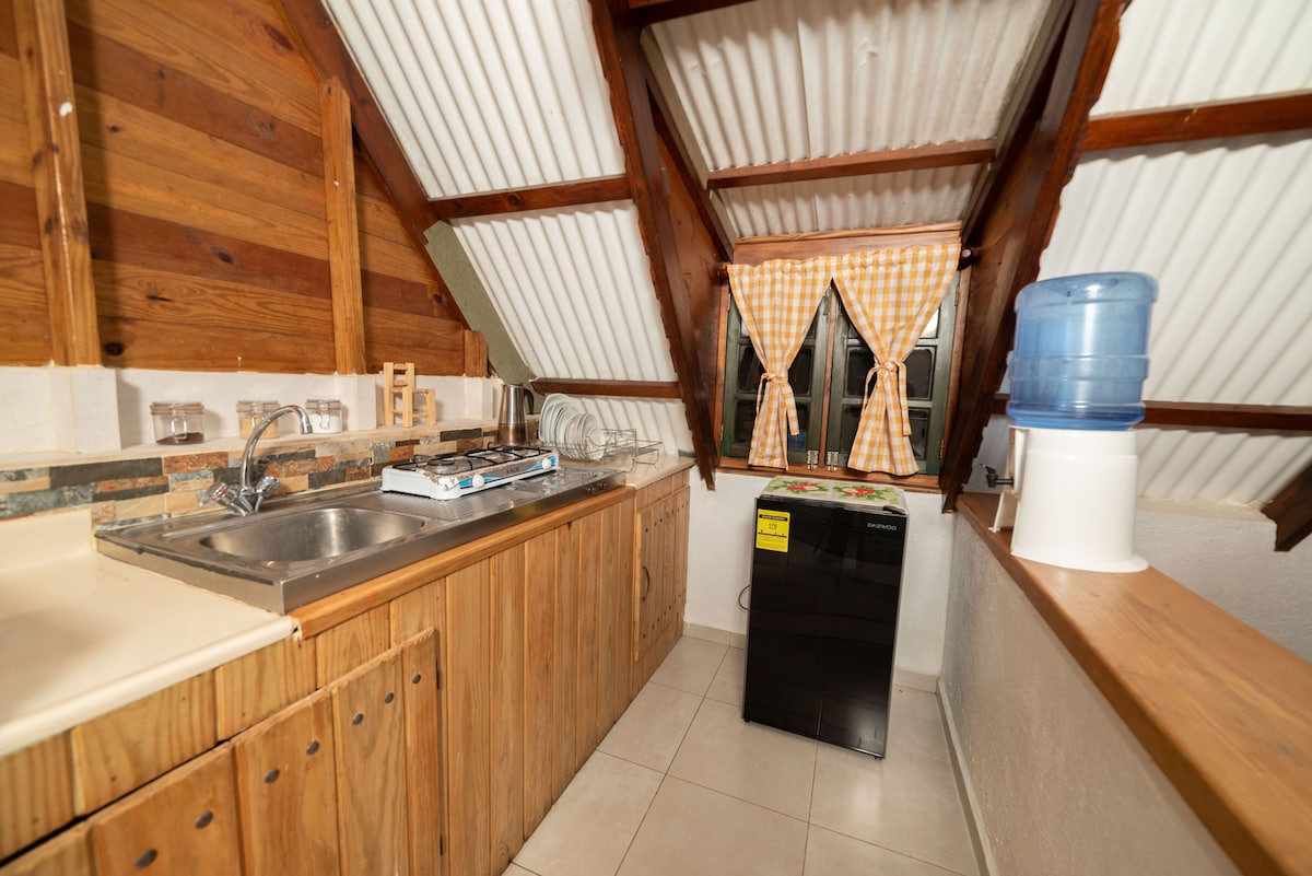 (Privacidad absoluta Alojamiento en propiedad cerrado PRIVADO, en plena naturaleza🌿, diseñado exclusivamente para ayudar a las parejas a reconectar entre si desconectandose de todo lo demas 💑 Lugar tranquilo, fresco y confortable. Servicios; -WiFi (satrlink) -Agua caliente en todas Las llaves -Aire acondicionado -Jacuzzi (el guest lo llena al gusto/ agua caliente Piscina climatizada -1 cama -BBQ -Cocina -Baño -TV -Air Fryer -Cámara en el exterior -Portón eléctrico -Área cerrada