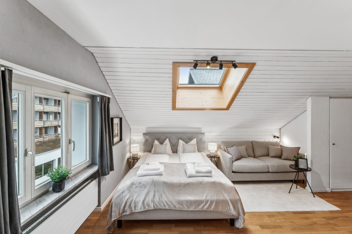 Entspanne dich in diesem einmaligen Rifugio. Im Jahre 2020 total sanierte 2 1/2- Zimmerwohnung, deren Interior Design komplett neu gestaltet wurde. Als Loft mit edelsten Materialien (Valser Granit, Schlossparkett, viel Altholz, freistehende Wanne, Eisenkamin auf zwei Seiten geöffnet, Designarmaturen) ausgebaut. Mit geschütztem Gartensitzplatz und Garten. Sonnige, ruhige Lage. Eigener Hauseingang, Sauna im Nebengebäude. Ski in, ski out oder Skibus in drei Minuten erreichbar.